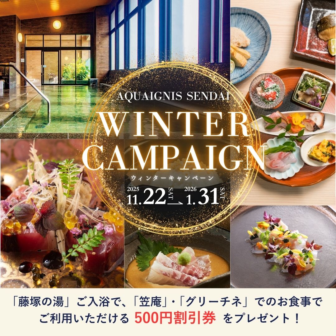 NEWSアクアイグニス仙台からのお知らせ 【11/22予約開始】「RVパーク アクアイグニス仙台」11/27オープン!開業 2025/11/27 第1駐車場 駐車制限のお知らせ日程:2025/11/26 ウィンターキャンペーン開催日程:2025/11/22~2026/1/31 クリスマスリースの花あそび@猿田彦珈琲日程 2025/11/20 アクアイグニス仙台 年末年始営業情報期間:2025/12/27~2026/1/3 クリスマス特別ディナー&ランチ@グリーチネ日程 2025/12/20~12/25 藤塚の湯 2025年11月イベントカレンダー期間:2025/11/01~11/30 たき火ティー開催日:毎月第3土曜日 MORE
