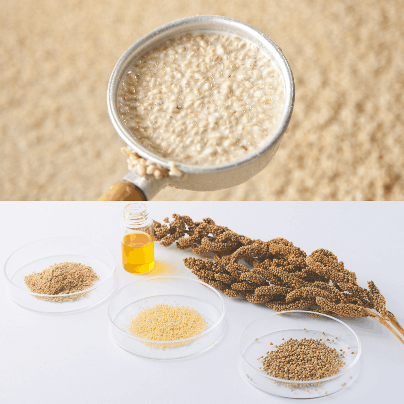 米もろみ粕エキス*2 と、さらにヒエヌカオイルを配合。