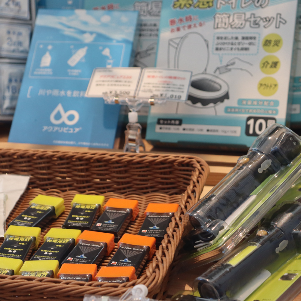 非常時に役立つアイテムを実際に手に取りながら、日常のお買い物とあわせて備えることができます。