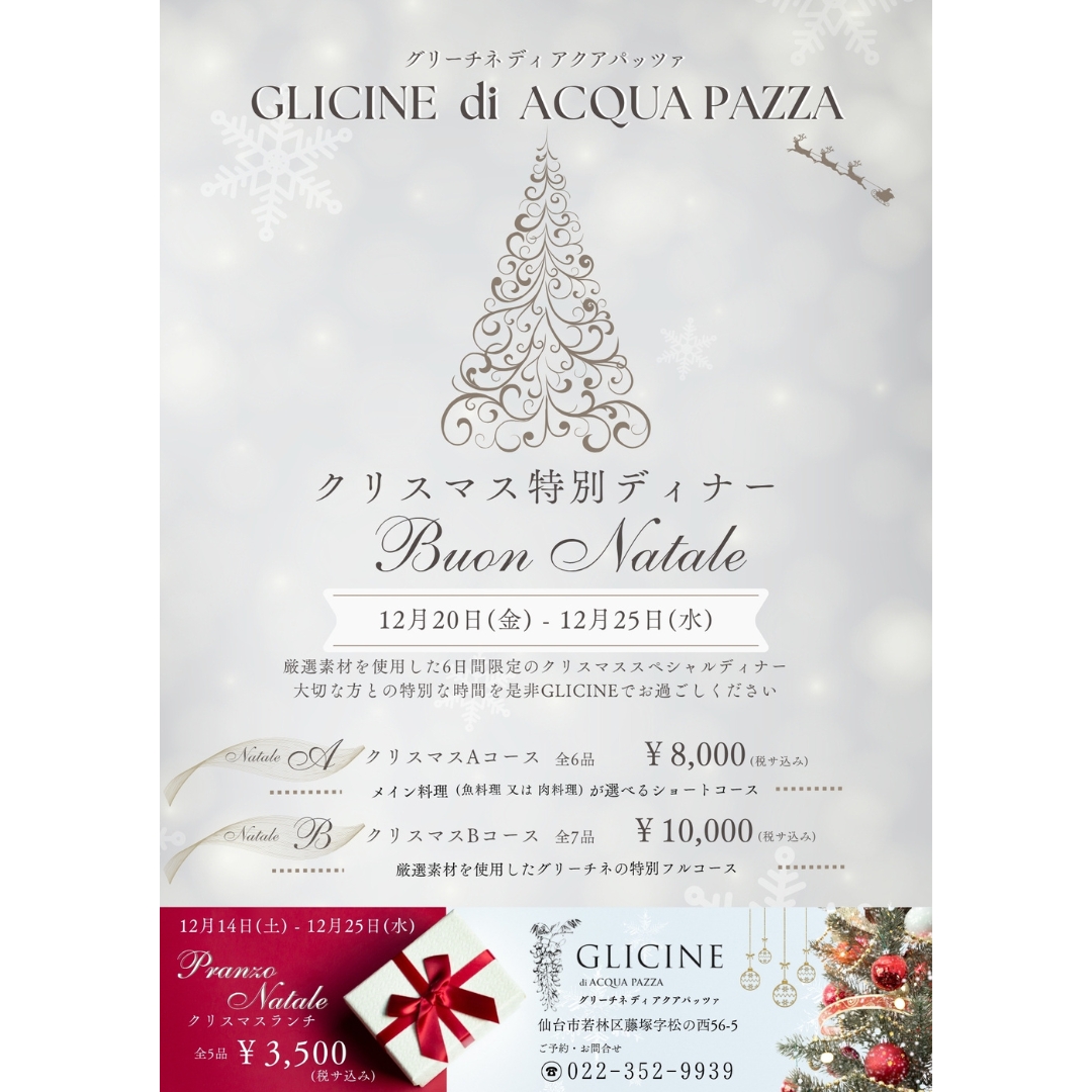 【グリーチネ、クリスマス特別ディナー&ランチ】