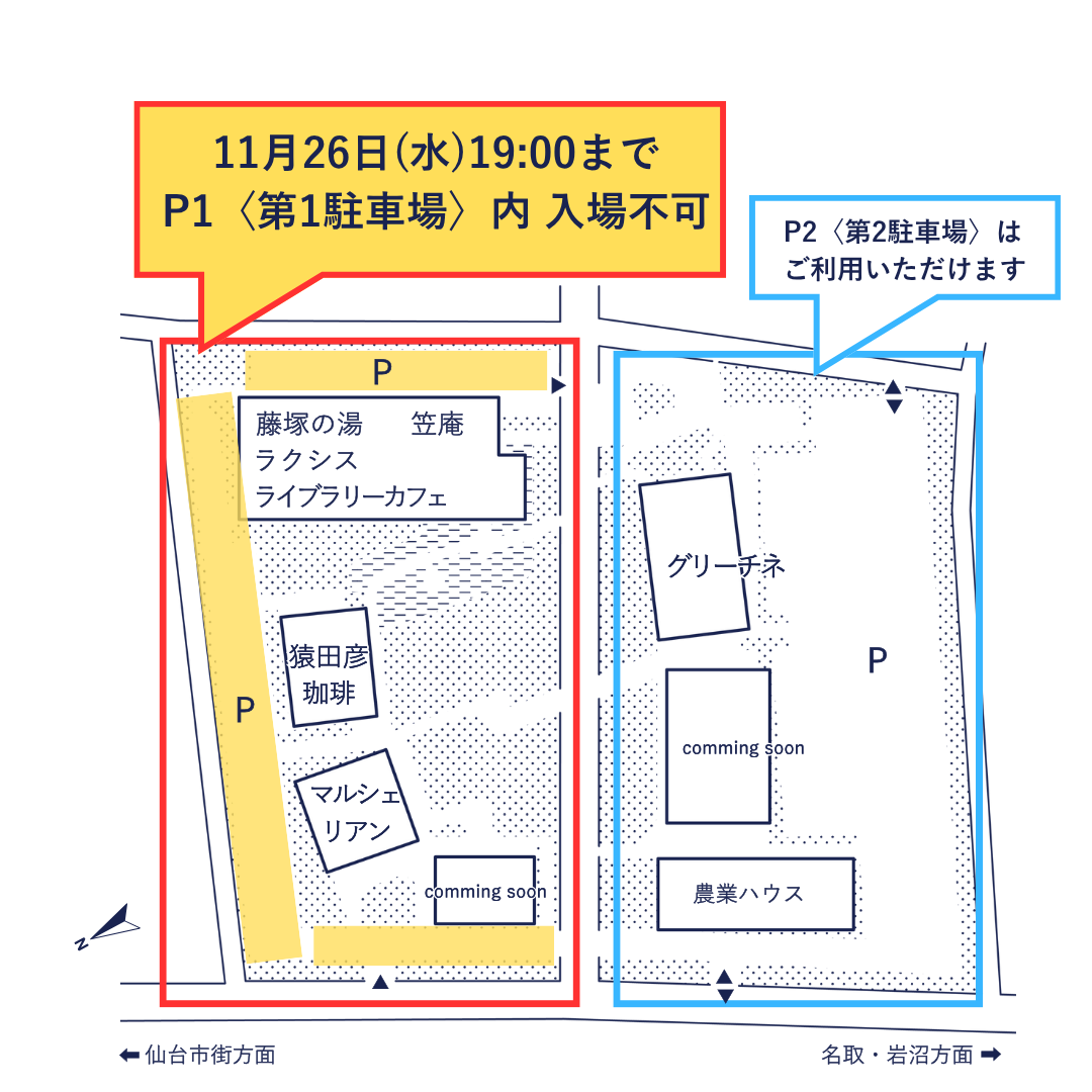 11/26(水)は施設運営上の都合により、下記の通り駐車場の利用制限を行います。