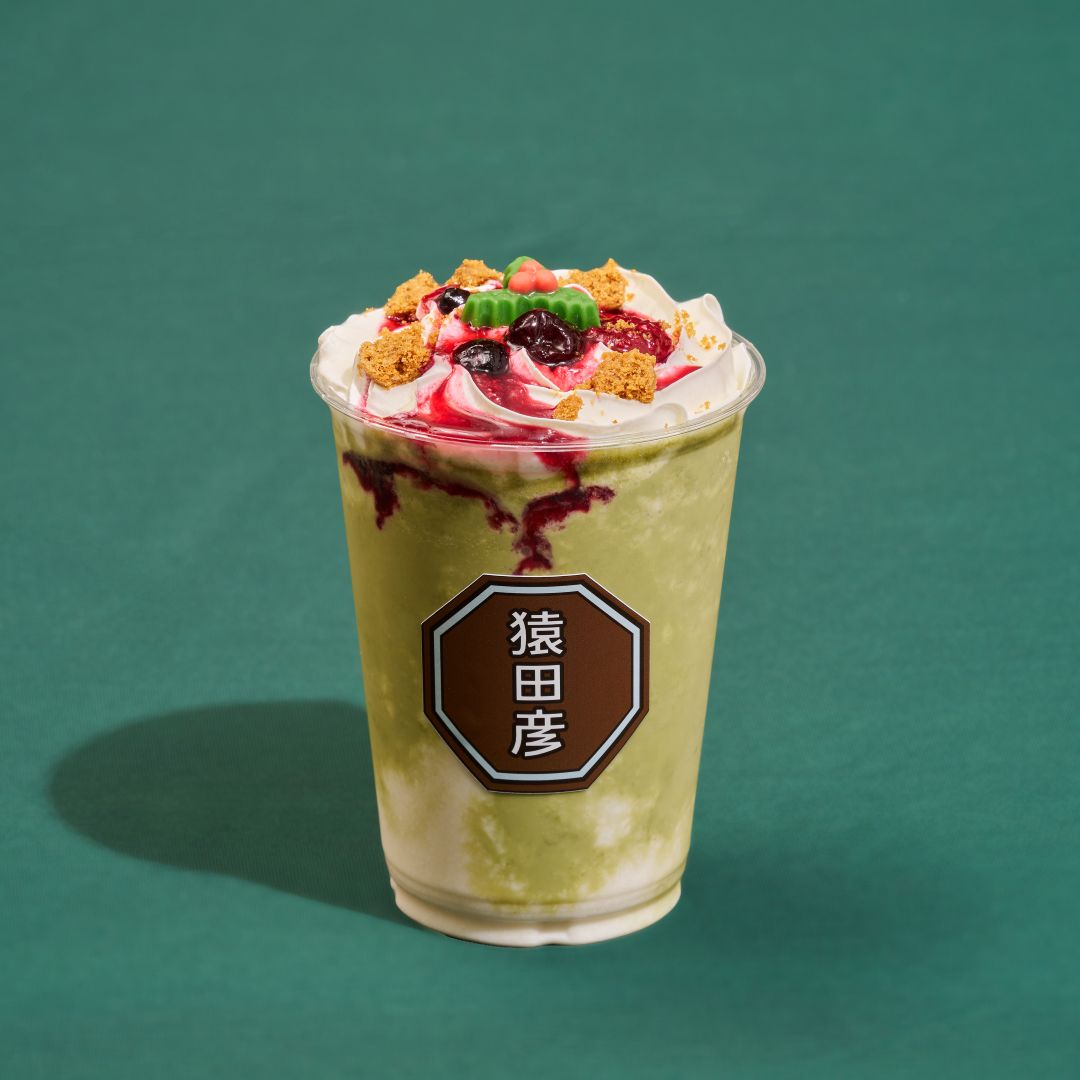 抹茶フローズンにホワイトチョコレートとスパイスのアクセントを。甘酸っぱいベリーソースをトッピング。