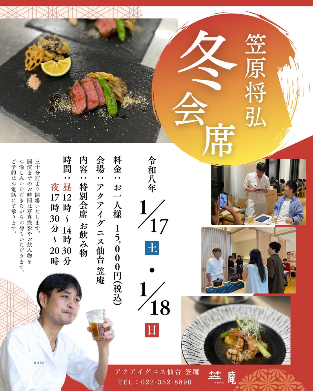 2026年1月17日(土)・18日(日)の二日間、冬の味覚を存分にお愉しみいただく特別な会席「冬会席」を開催いたします。